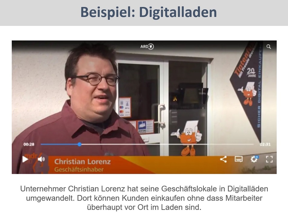 Der Unternehmer Christian Lorenz, auch ein langjähriger Kunde von mir, hat seine Geschäftslokale in Digitalläden umgewandelt. Dort können Kunden alles rund ums Druckergeschäft einkaufen ohne dass Mitarbeiter überhaupt vor Ort im Laden sind.